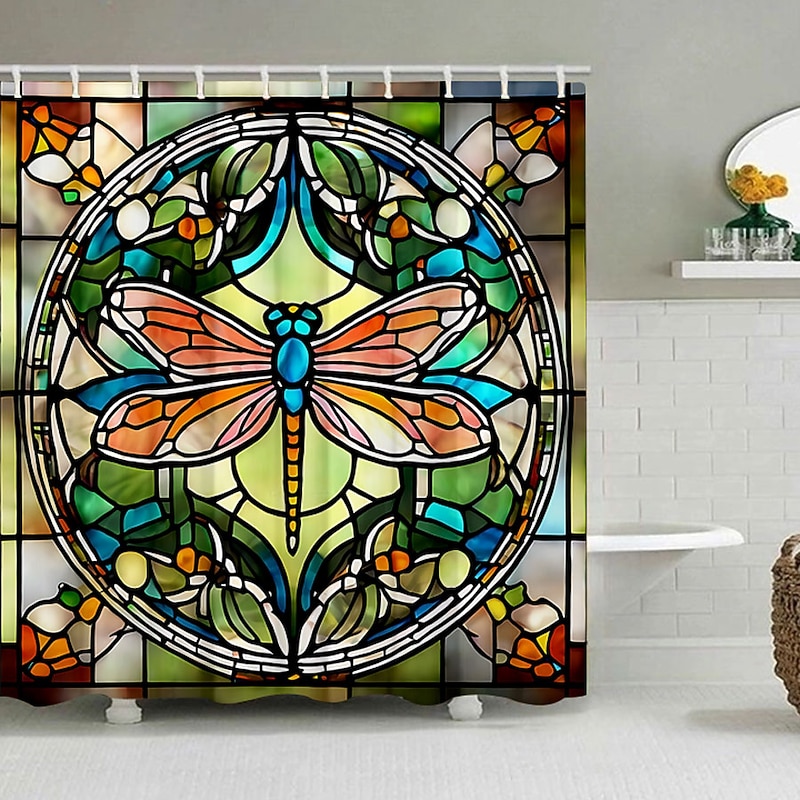Why Choose Shower Curtain with Hooks 180cm*180cm(70"*70") Polyester Washable Waterproof Stained Glass Dragonfly Pattern Bathroom Decor?