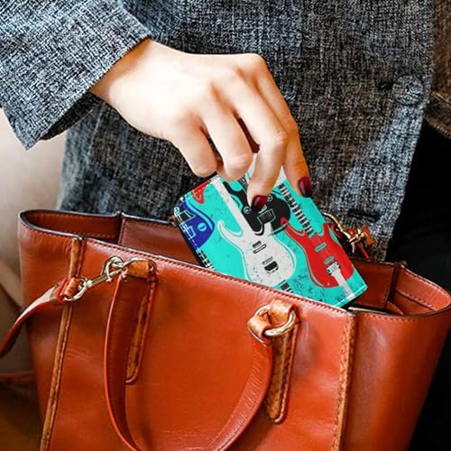 Colorful Electric Acoustic Guitars Blue Women Wallet Zip Around RFID Blocking Credit Card Wallets Cute Decorative Mens Wallet with Coin Pocket