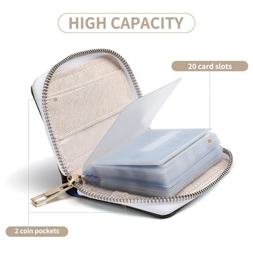 • Large Capacity: The card holder measures 4.5 x 6.3 inch. Slim pocket design impeccable to fit in your pocket and wallet. It designed with 20 card slots that can hold your credit card, ID card, name cards, etc. 2 coin pocket for storing folded cash and money