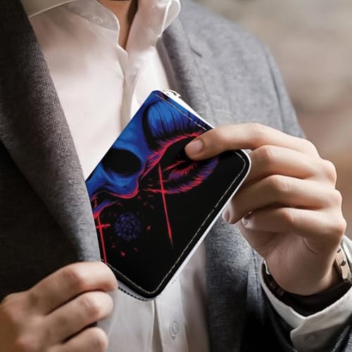 sizzling ! Women's Portable Card Holder Wallet, Pu Leather Credit Card Organizer Bag with 20 Slots Goth Skull Goat Art Zipper Slim Coin Purse