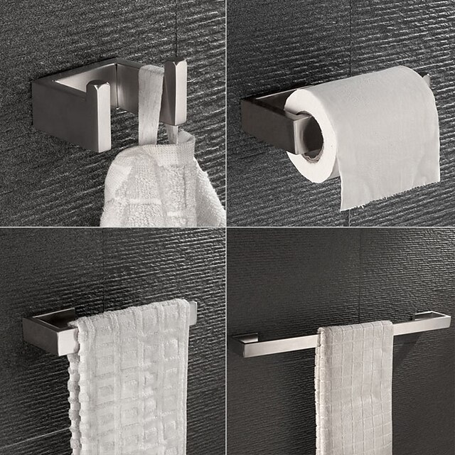 Why Choose Bathroom Hardware Accessory Toilet Paper Holder / Robe Hook and Bathroom Single Rod Stainless Steel Wall Mounted Brushed Silvery 4pcs / 3pcs / 1pc?