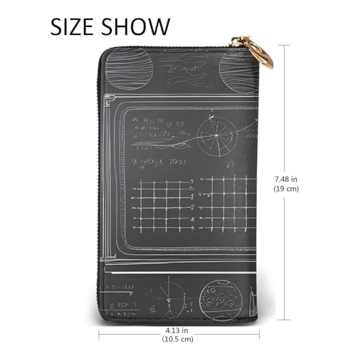 Blackboard Math Prints Leather Long Clutch Wallet for Fashionable Girls and Women - long-lasting, chic, and Functional, Black, One Size