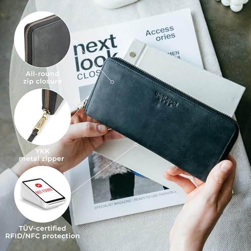 sizzling ! BERLINER BAGS Vintage Genuine Leather Wallet Palma, RFID Blocking Credit Card Holder, Slim Womens Wallet, Zip Around Wallet for 14 Cards, Bills, Coins, ID Window - Dark Grey