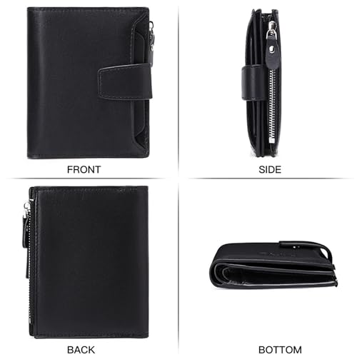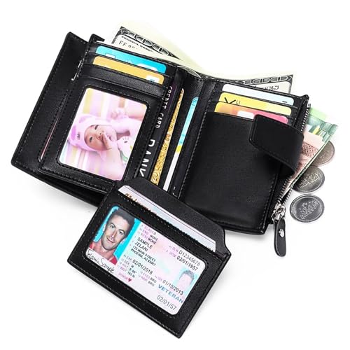 Leather Wallet Women Small : Large Capacity Rfid Blocking Bifold Wallets, Compact Card Holder Cash Wallet With ID Windows, Zipper Pocket