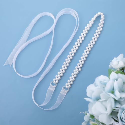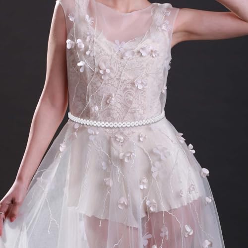 Pearl Belt, Wedding Pearl Waist Belt for Women, Bridal Bridesmaid Dresses Sash Belts, Organza White Ribbon Belts for Formal Dress Tight or loose dress Wedding Party