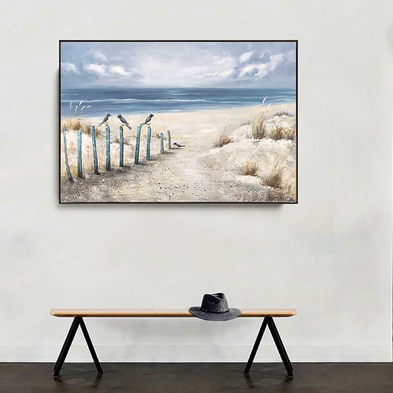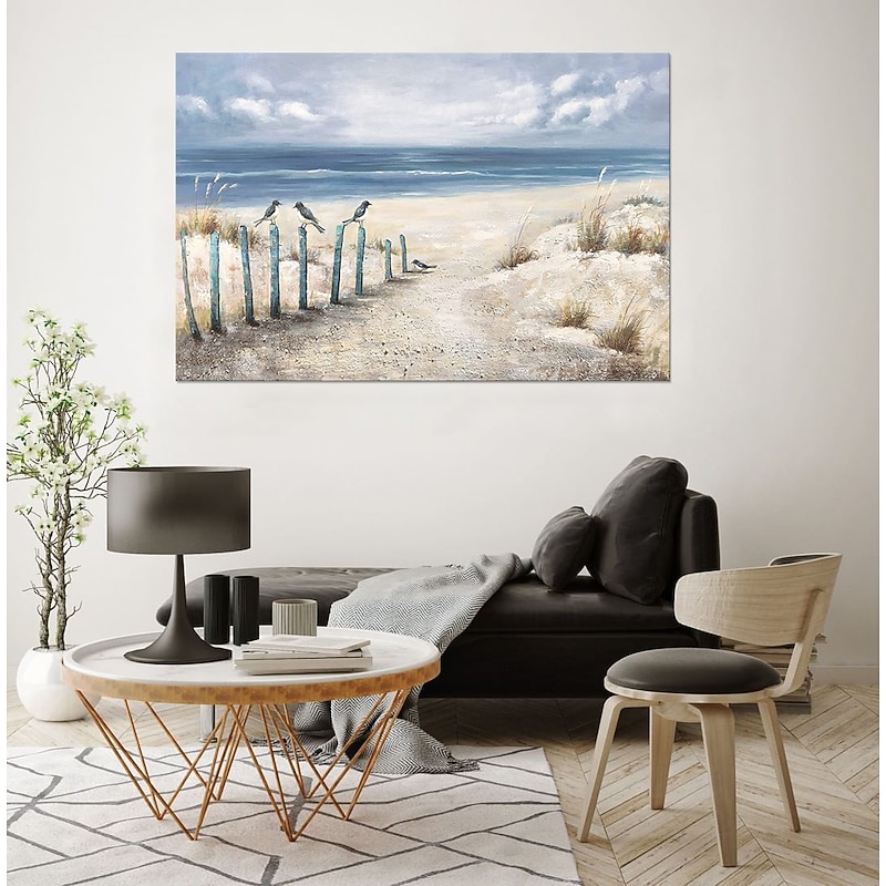 Handmade Oil Painting Canvas Wall Art Decoration Seaside Leisure Scenery Perched Birds for Home Decor Rolled Frameless Unstretched Painting