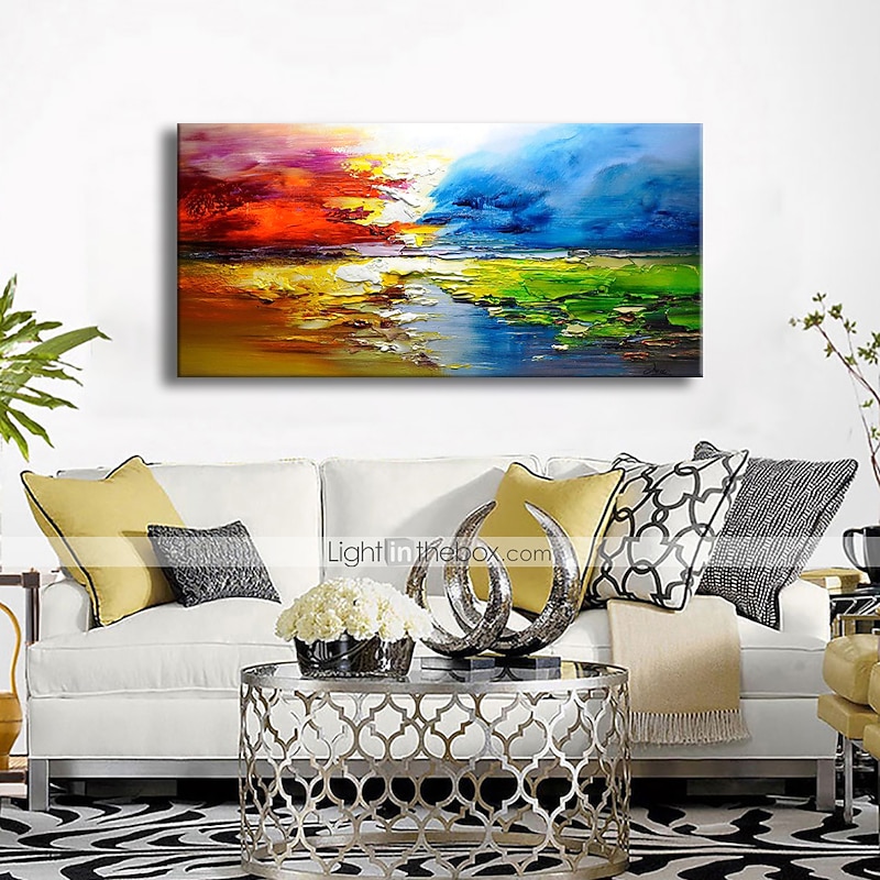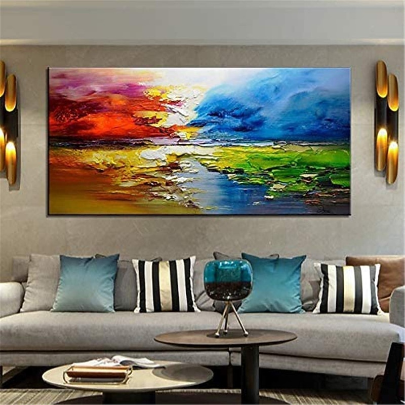 Large Size Oil Painting 100% Handmade Hand Painted Wall Art On Canvas Colorful Lake Scenery Clouds Abstract Home Decoration Decor Rolled Canvas No Frame Unstretched