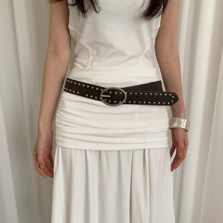 Why Choose 1 Piece Bohemian Y2K Rivet Belt Punk Style PU Leather Buckle Belts Adjustable Apparel Waistbelt 104 * 3.6cm?