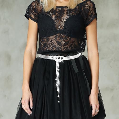 【Unique Design】This sparkling belt is adorned with rhinestones and features a heart-shaped buckle that adds a touch of romance and uniqueness. Each rhinestone is meticulously crafted to shine brilliantly, effortlessly enhancing any outfit. Whether for a casual day out or a special occasion, this belt is guaranteed to elevate your style and turn heads wherever you go.【High-Quality Material】Crafted from alloy and rhinestones, this waist belt boasts a metal base fully embedded with crystal stones. It is designed to accentuate your waistline with a touch of sparkle, perfectly complementing your attire and flattering your figure. The sturdy clasp ensures easy usage and long-lasting durability. Whether for a special event or to add a hint of romance to your everyday wardrobe, this belt is the perfect choice.【Adjustable Belly Chains】Our crystal belts are 118/46.5 inches in length and adjustable in size, catering to all waist sizes with ease. They can be extended to a maximum length of 115 cm/45.3 inches, ensuring a perfect fit no matter how thin your waist is. These waist chain belts are a must-have addition to every woman's wardrobe, offering versatility and elegance throughout the year.【Versatile for Most Occasions】The adjustable metal base beautifully showcases the dazzling crystal stones, making this silver belt a versatile accessory for women. It effortlessly elevates a simple tee or plain jeans, adding a touch of charm and sparkle to even the plainest dress. Whether for work or a night out, this belt is the perfect choice to enhance your outfit.【Ideal Gift for Women】These waist link chains truly elevate and enhance any outfit, making them a delightful gift choice for your wife, daughter, or female friends. With their delicate, stylish, and charming design, they are bound to capture attention and add a pop of color and charm to everyday outfits. Perfect for everyday use. superior materials and excellent craftsmanship ensure long-lasting durability.