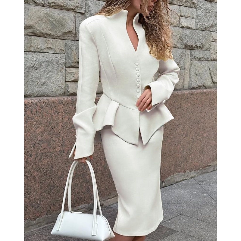 More information about Tuxedo Dress 2 Pieces Tuxedo Dress Sets Mermaid / Trumpet Mermaid Formal Stretch Crepe Elegant plain Long Sleeve Midi Length V Neck Single Breasted