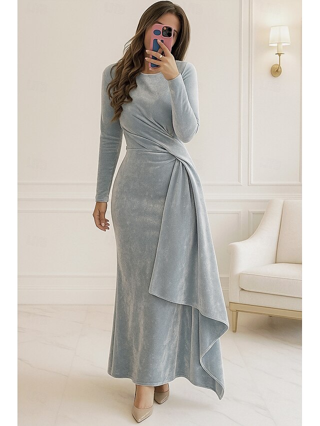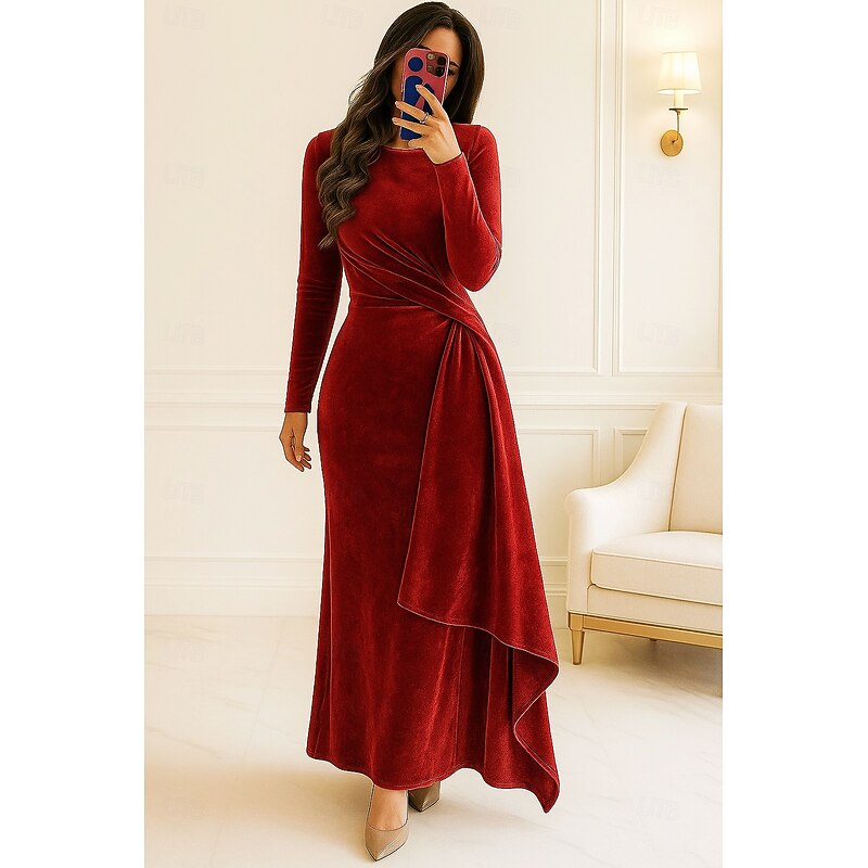 Why Choose Blue Red Black Sheath / Column Evening Gown Elegant Dress Formal Fall Knee Length Long Sleeve Crew Neck Velvet with Pleats Ruched 2025?