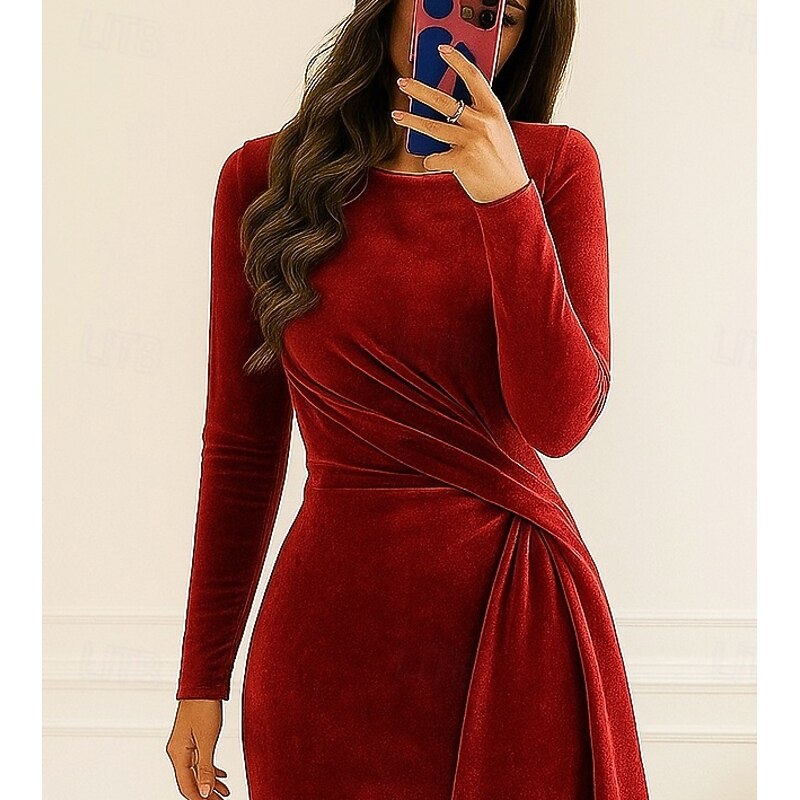 $144.99 - Blue Red Black Sheath / Column Evening Gown Elegant Dress Formal Fall Knee Length Long Sleeve Crew Neck Velvet with Pleats Ruched 2025 2025. Shop for cheap Cocktail Dresses online? Buy at lightinthebox.com on sale today!