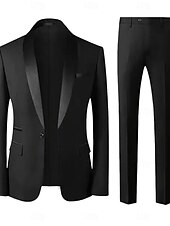 More information about Men's Party Business Wedding Suits Shawl Lapel Black Formal Solid Colored Tailored Fit 2 Piece Single Breasted One-button