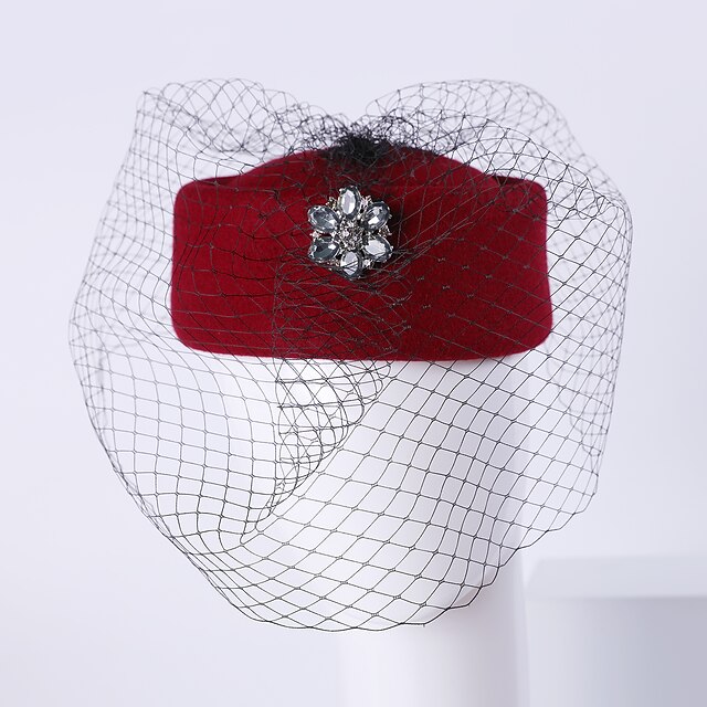 More information about Hats 100% Wool Beret Hat Fedora Hat Tea Party Cocktail Elegant Wedding With Rhinestone Pure Color Headpiece Headwear