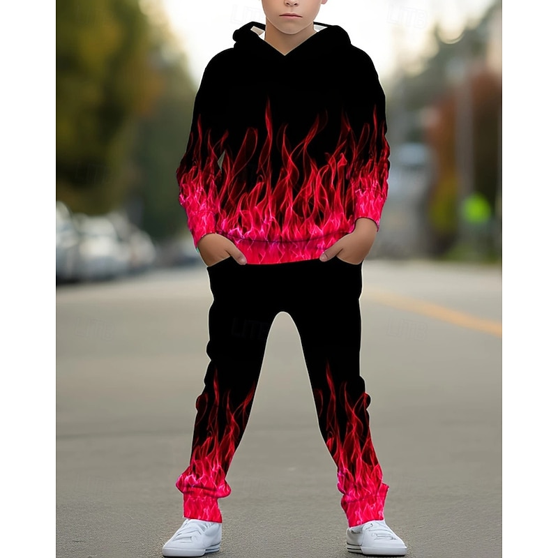 Why Choose Boys' 3D Graphic Hoodie & Sweatpants Set Sports Suit Tracksuits Long Sleeve Spring Fall Daily Basic Casual Kids 4-12 Years Hooded Outdoor Vacation Sports Tailored Fit?