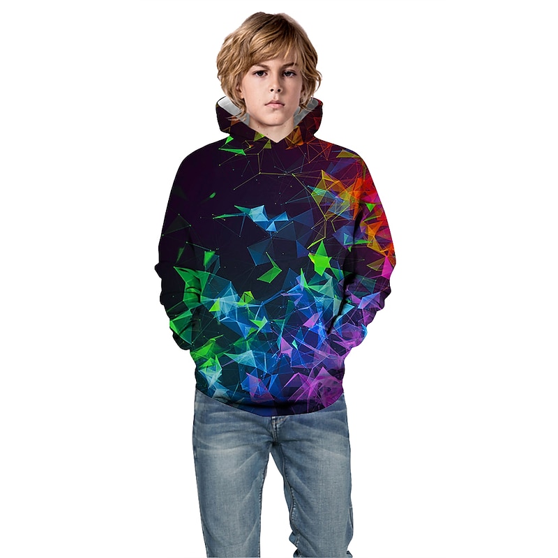 More information about Kids Boys' Hoodie & Sweatshirt Pullover Long Sleeve Black 3D Print Rainbow Graphic Optical Illusion Color Block With Pockets Active Basic 4-12 Years