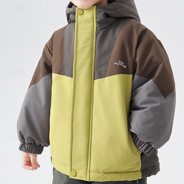 sizzling ! Kids Boys' Fleece Jacket Hiking Jacket Outdoor Jacket Outerwear Color Block Long Sleeve Zipper Pocket Comfort Waterproof Windproof Coat Outdoor Fashion Daily Dark Yellow Light Blue Spring Fall 4