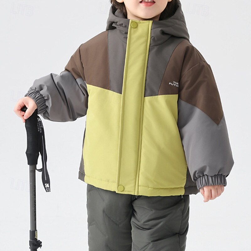 More information about Kids Boys' Fleece Jacket Hiking Jacket Outdoor Jacket Outerwear Color Block Long Sleeve Zipper Pocket Comfort Waterproof Windproof Coat Outdoor Fashion Daily Dark Yellow Light Blue Spring Fall 4