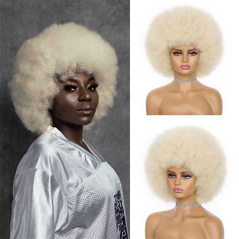 $20.99 - Afro Wig - 70s Blonde Afro Wig For Women Soft Afro Kinky Curly Hair Wigs With Bangs Natural Looking Men Bouncy Blonde Afro Puff Wig Synthetic Hair Big Afro Wig Halloween Cosplay Party Wigs 2025. Shop for cheap Historical Wigs online? Buy at lightinthebox.com on sale today!