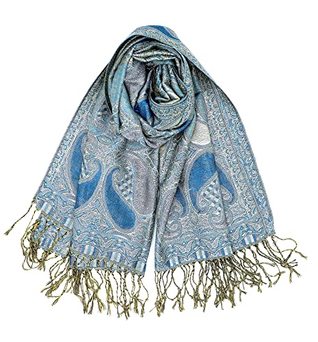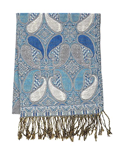 Achillea Women’s Paisley Pattern Sparkling Metallic Pashmina Shawl Wrap Scarf Stole