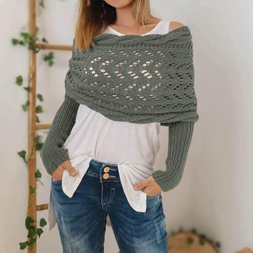 sizzling ! Knitted Scarf with Sleeves for Women, Women's Scarves & Wraps with Sleeve Multifunctional Hollow Knit Cable Scarf Wraps