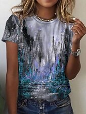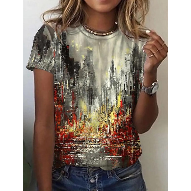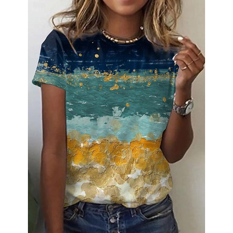 More information about Women's T Shirt Tie Dye Fashion Short Sleeve Round Neck Regular Tops Daily Weekend Print Yellow Red Navy Blue Blue Green Summer