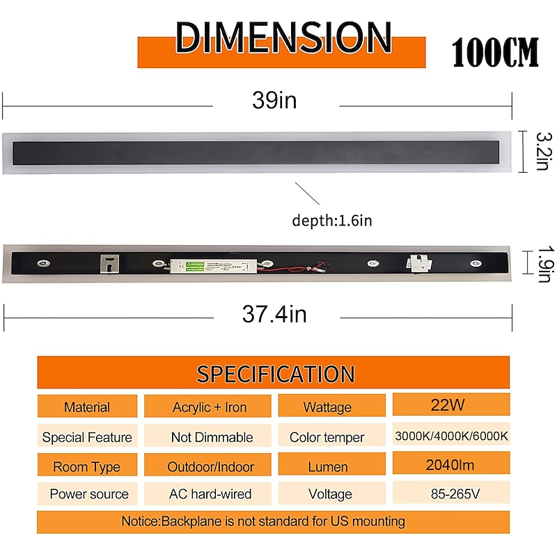 This 60/80/100cm Wall Light LED Acrylic Wall Sconces Long Porch Wall Lamp Fixture Suitable for Living Room AC85-265V combines elegant design with practical functionality. Every detail has been carefully considered to ensure you get the premier possible experience. The superior construction means this product will serve you well for years to come.
