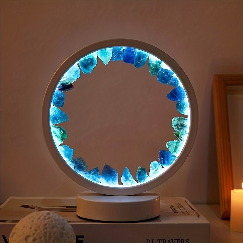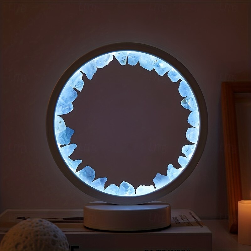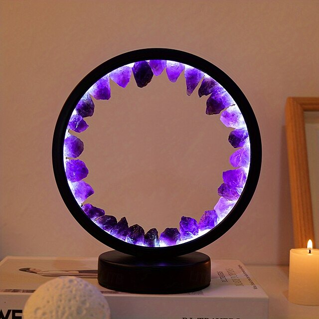More information about LED Rechargeable Bedside Lamp Natural Quartz Amethyst Cluster Night Lamp Bedroom Desk circular Circle Decorative Lights