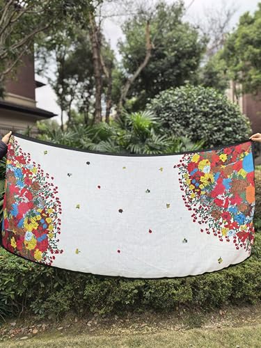 Fabric type: Cotton,hempCare instructions: Hand Wash OnlyOrigin: Made in the USA or ImportedSize: The rectangular printed cape is 70.87 inches long and 33.46 inches wide (180cm by 85cm), large enough to cover the entire shoulder and back. There are a variety of colors available to match dresses and skirts.Material: Advanced cotton and hemp material , light weight, plush and soft, skin friendly and breathable. Hand Wash Only/Hang Dry/Do not Soak and Bleach.Pattern: The large and small flowers in the mountains are combined together, just like the scene of the Wizard of the mountains. It's like you're in a sea of flowers. Bright colors will also make your outfit more eye-catching.Occasion: This rectangular printed scarf is often used in spring and fall. It can be effortlessly worn with your skirt, coat, jacket, sweater or dress. It can be used as a shawl for weddings, birthday parties, evening events or trips. It can also be used for wedding shawls and evening gowns, holiday dresses, party dresses, outdoor, travel dresses, Christmas scarves, Day of the Dead scarves, May 5 parties, etc.The perfect gift for your loved one, family member, friend, or colleague for anniversaries, birthdays, or special occasions such as Valentine's Day, Mother's Day, Day of the Dead, Mexican Cinco de Mayo, Thanksgiving, Christmas, New Year's, and more. Perfect for everyday use. premium materials and excellent craftsmanship ensure long-lasting durability.