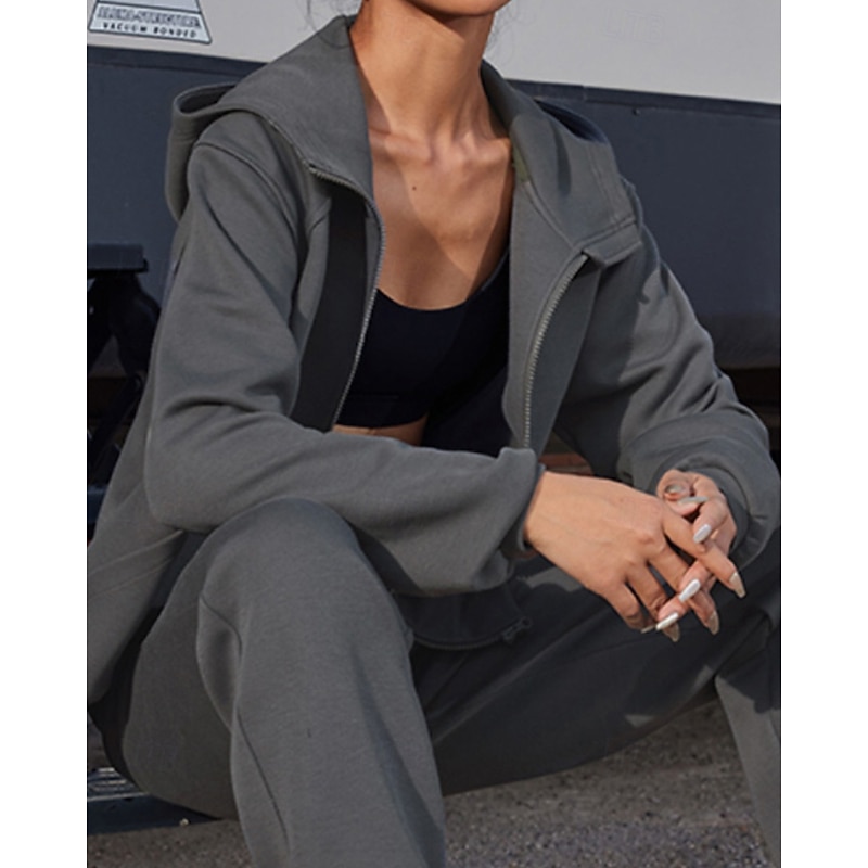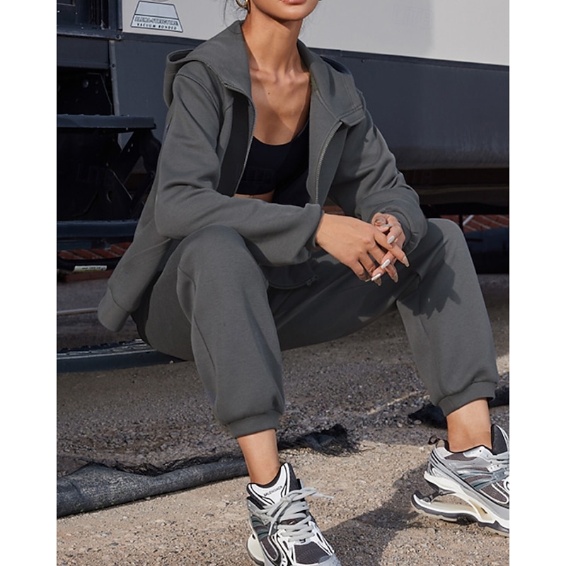 This Women's Tracksuit Sweatpants Hooded Jacket Zipper Pocket Solid Colored Clothing Suit Fall Dark Grey Apricot Workout Athleisure Running Thermal toasty Windproof Long Sleeve Sport Activewear Stretchy combines elegant design with practical functionality. Every detail has been carefully considered to ensure you get the best possible experience. The first-class construction means this product will serve you well for years to come.