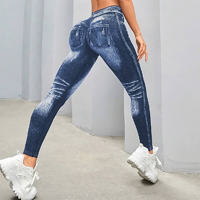 $12.99 - Women's Denim Print Fake Jeans Yoga Leggings Tummy Control High Waist Gym Dance Athletic Bottoms Blue Fall Sports Activewear Tight Fit 2025. Shop for cheap Yoga Leggings & Tights online? Buy at lightinthebox.com on sale today!