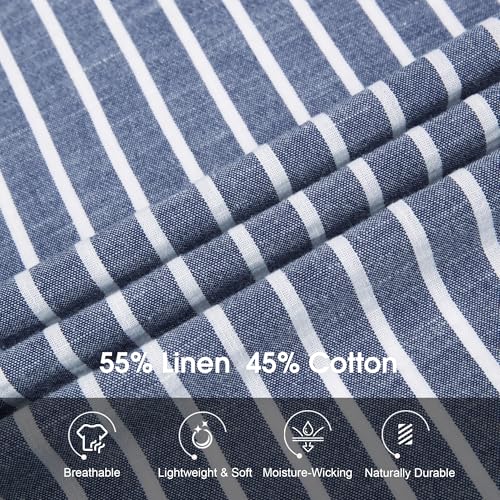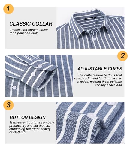 More information about Damipow Mens Linen Cotton Striped Long Sleeve Dress Shirt Casual Button Down Shirt