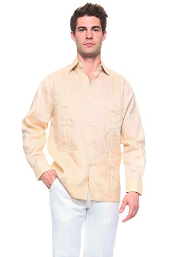 Mojito Men's Irish Linen Four-Pocket iconic Guayabera Shirt Long Sleeve