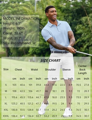 Fabric type: 52%Cotton 48%PolyesterCare instructions: Machine WashOrigin: ImportedClosure type: ButtonMOISTURE WICKING——Mens golf shirts are made from 52%cotton and 48%polyester, light weight, quick dry, moisture wicking, comfortable and breathable keep you cool all day. The cotton short sleeve polo shirt is extremely durable, abrasion-resistant, and stretchy enough to allow for better movement, making it a staple piece in your wardrobeSTYLISH FEATURE——The men's athletic polo shirts designed with short sleeve, classic 3 button placket, knitted ribbed collar and cuffs elevate your appearance and add a touch of sophistication to your ensemble. Casual style with athletic sporty function. Stretch fabric and superior tailoring allow the men's cotton collared golf shirts to fit the body, providing enhanced mobility during the golf swing and outdoor activityMULTI-MATCHED STYLE——One of the most popular ways for a man to style out a polo is to pair it with chinos for a laid-back look. Let your outfit coordination chops truly shine by complementing your getup with a pair of athletic shoes. You can match this short sleeve shirt with shorts, dress pants, casual pants, or wear under coat or blazer for a casual or formal lookOCCASION——This quick dry polo shirt for men suits for golf, hiking, bowling, fishing, tennis, business, daily casual, company, work, tactical training, vacation travel, holiday, fitnes, jogging, walking, festival, camping, climbing, mountaineering, outdoor activity, etc. And a great gift for yourself, or your hubby, son, brothers, friendsGARMENT CARE——The casual fashionable shirts machine washable and easy to maintain. Please check size chart before ordering these mens summer tops to ensure accurate fitting Perfect for everyday use. High quality materials and excellent craftsmanship ensure long-lasting durability.