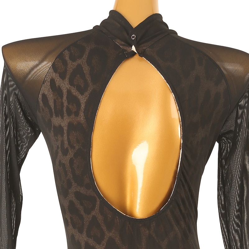 More information about Dance Salsa Latin Dance Dress Leopard Print Tulle Women's Training Long Sleeve High Spandex Tulle