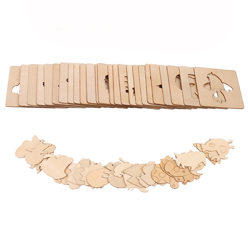 sizzling ! 20pcs Montessori Kids Drawing Toys Wooden DIY Painting Stencils Template Craft Toys Puzzle Educational Toys for Children Gifts