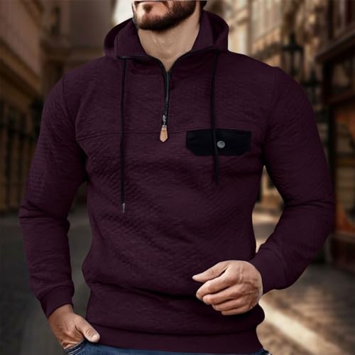 Men's Quilted Hoodies Casual Long Sleeve Quarter-Zip Pullover Sweatshirt with Pockets