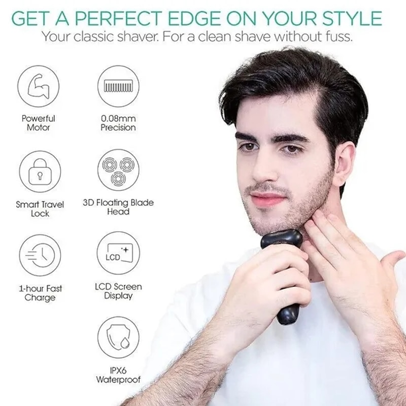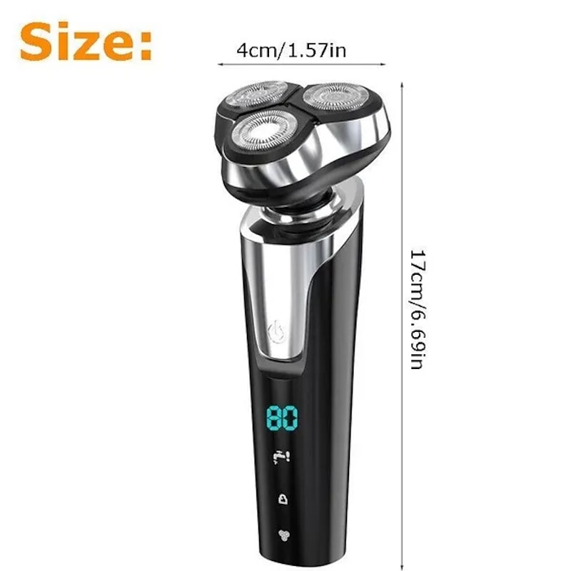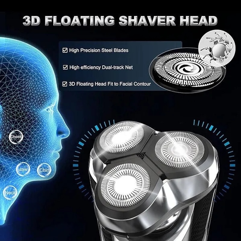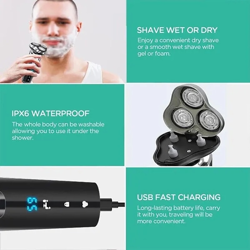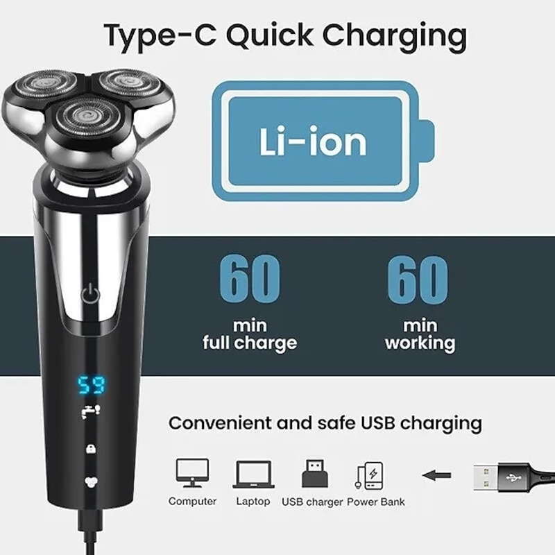 LCD Display Electric Shaver Dry/Wet Cordless Razor Type-C speedy Charging Rotary Floating Beard Trimmer