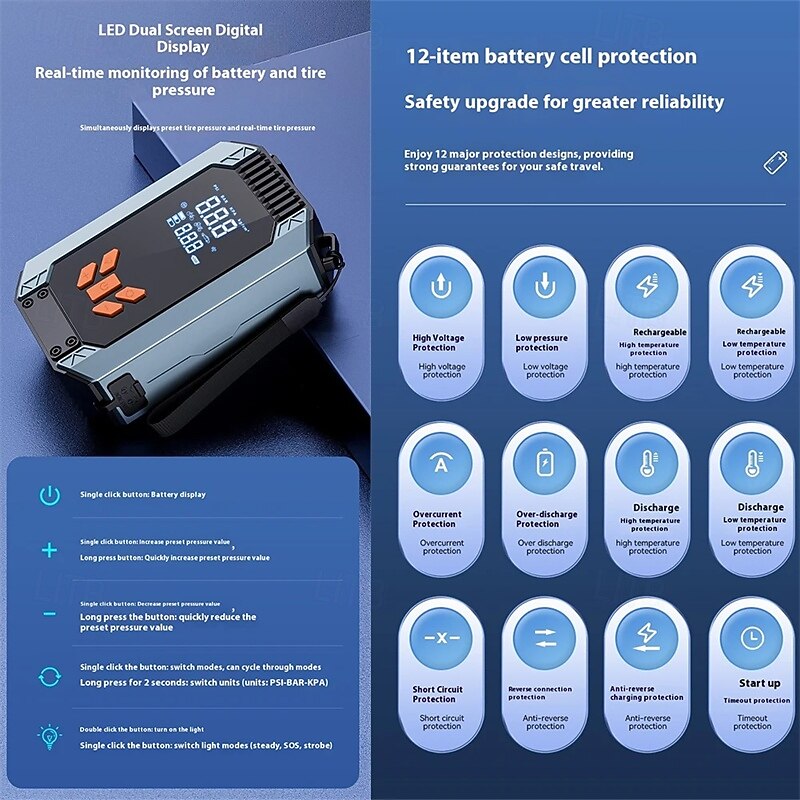 $55.99 - Tire Inflator Car Battery Jump Starter Portable Air Compressor Electric Air Pump for Cars SUVs & Trucks 2025. Shop for cheap Vehicle Repair Tools online? Buy at lightinthebox.com on sale today!