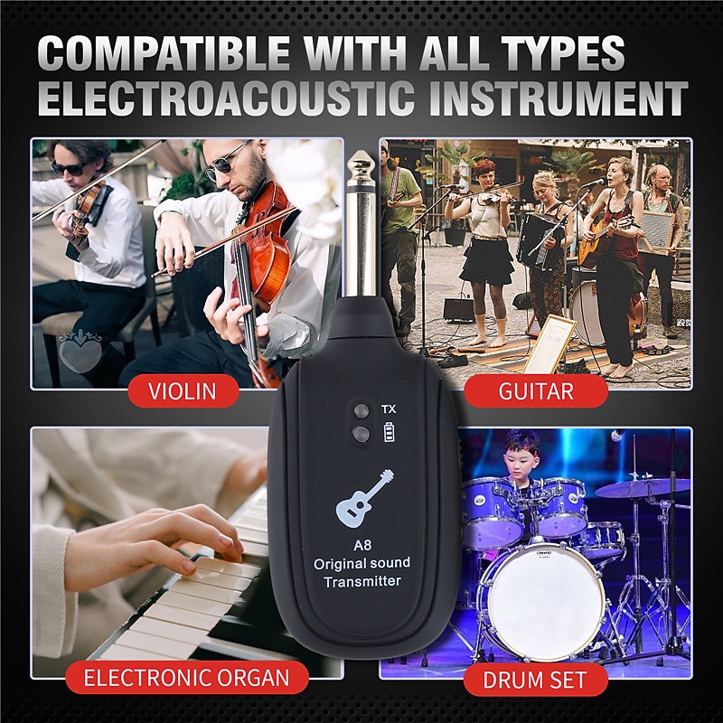 sizzling ! A8 UHF Wireless System Guitar Pickup Audio Transmitter Receiver for Electric Guitar Bass Violin Parts