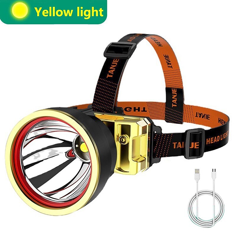 LED headlight super bright USB rechargeable miner's lamp high-power glare flashlight head-mounted field fishing lamp super-capacity battery torch white light and yellow light two kinds of lighting