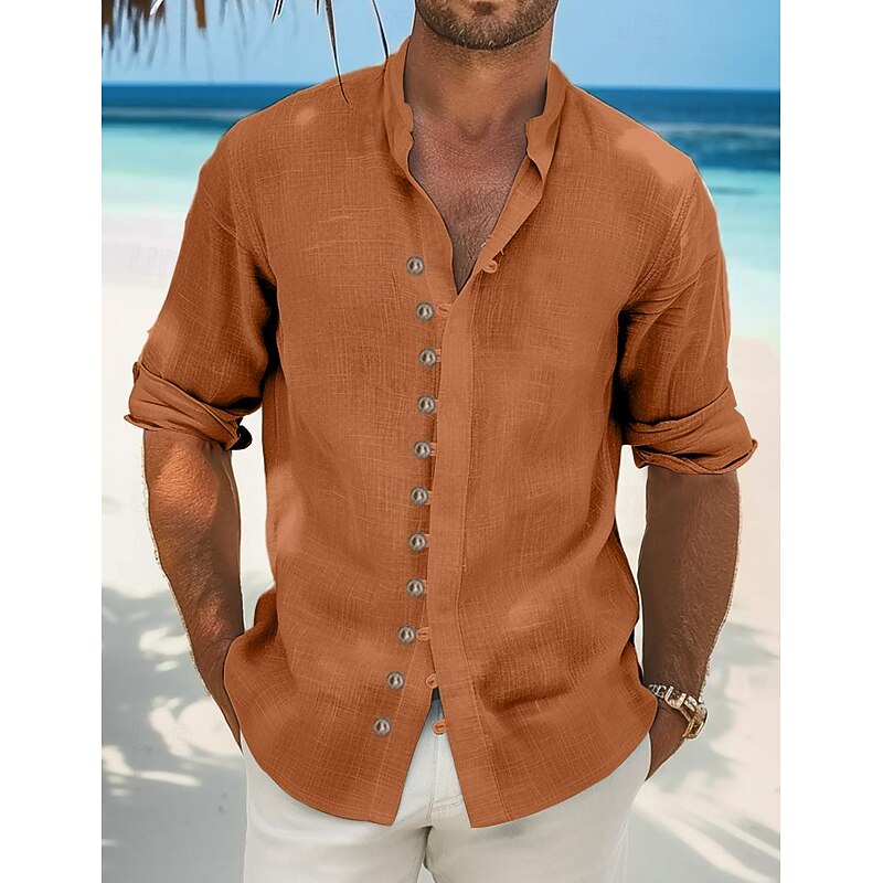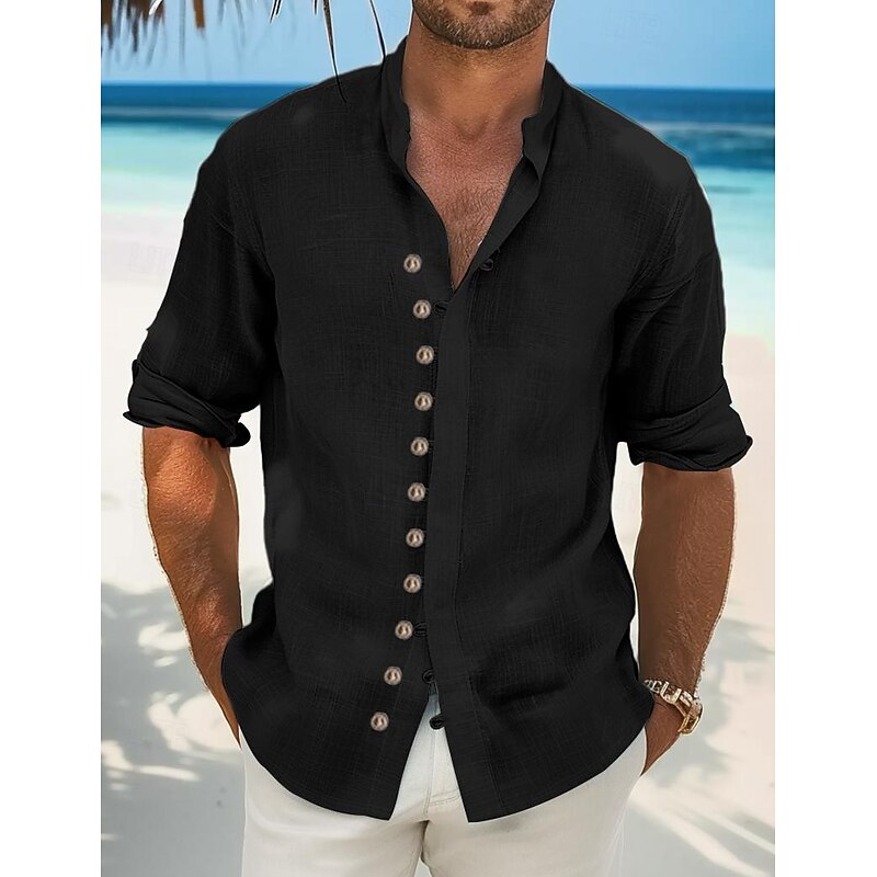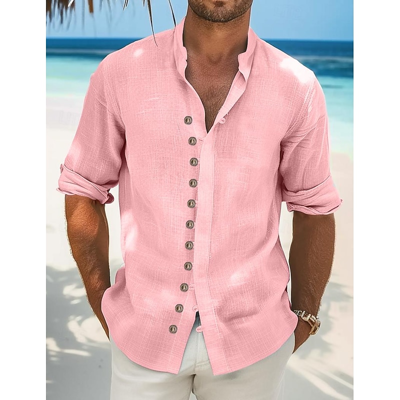 This Men's Shirt Linen Shirt Summer Shirt Beach Wear Casual Shirt Button Up Shirt Plain Vacation Curise Black White Light Green Pink Long Sleeve Stand Collar Spring & Summer Clothing Apparel combines elegant design with practical functionality. Every detail has been carefully considered to ensure you get the supreme possible experience. The top-grade construction means this product will serve you well for years to come.