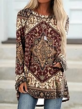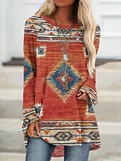 This Women's T Shirt Graphic Tribal Vintage contemporary Classic Long Sleeve Crew Neck Round Neck Long Tops Daily Print Wine Red Blue Spring Fall combines elegant design with practical functionality. Every detail has been carefully considered to ensure you get the best possible experience. The first-class construction means this product will serve you well for years to come.