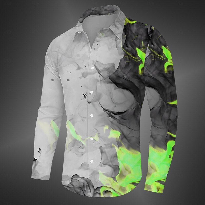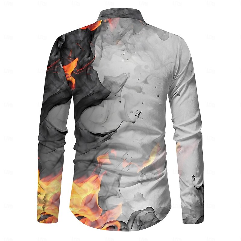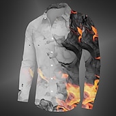 More information about Men's Flame Shirt Button Up Shirt Long Sleeve Casual Dark Daily Fall Winter Spring & Summer Turndown Shirt Collar Button Up 3D Print Black Yellow Blue Fuchsia Green
