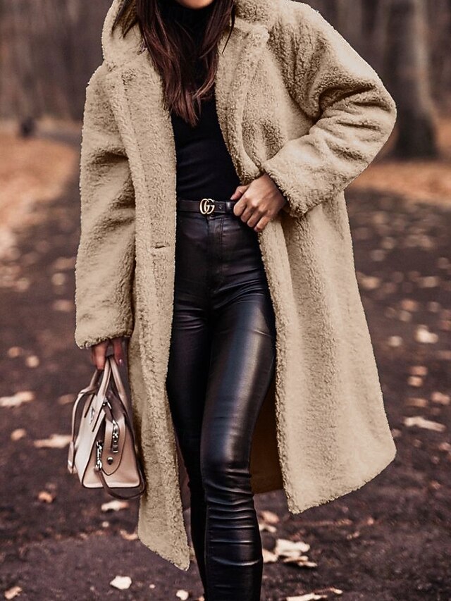 Highlights [Fabric] : Expertly crafted from high-quality polyester, this women's teddy coat ensures warmth and breathability. The luxurious faux shearling material provides a cozy feel, making it perfect for chillier weather. [Fit and Style] : The jacket features a regular fit with a single-breasted closure, achieving a balance between comfort and style. Its long outerwear length and micro-elastic fabric allow it to drape gracefully over different body types. [Design Highlights] : This hoodie jacket's functional design includes practical buttons and pockets, as well as fleece lining for added comfort. The hoodie neckline offers extra warmth and a casual, laid-back vibe, while the plain pattern maintains a versatile look suitable for various occasions. [Occasions] : Ideal for daily wear, vacations, and street-style outings, this jacket is a versatile addition to any wardrobe. Its chic yet casual style makes it perfect for going out, whether youβre heading to a relaxed outdoor event or a leisurely getaway. [Sizes] : Available in a range of sizes from S to 2XL, this jacket is designed to offer a cozy fit for a broad audience. Suitable for various body types, it's a great choice for those seeking warmth and style in a single piece. Perfect for everyday use. superior materials and excellent craftsmanship ensure long-lasting durability.