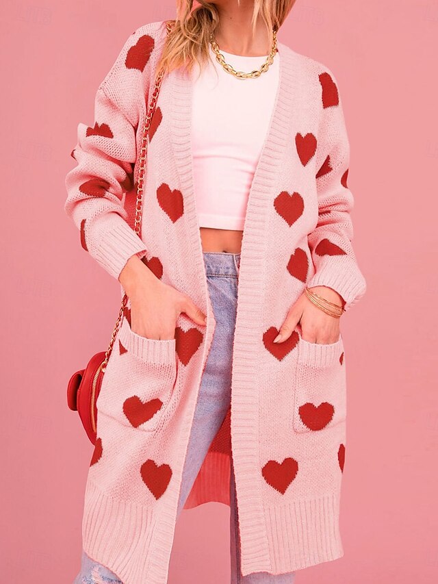 This Women's Sweater Cardigan Elegant Fashion Streetwear Heart Open Front Pocket Knitted Long Sleeve Regular Tops Knit Outdoor Daily Weekend Black Pink Fall Winter combines elegant design with practical functionality. Every detail has been carefully considered to ensure you get the premier possible experience. The top-grade construction means this product will serve you well for years to come.