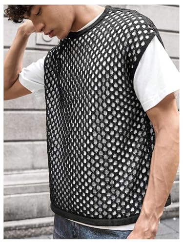 sizzling ! Floerns Men's Hollow Out Crew Neck Sweater Vest Cap Sleeve Casual Knitwear Tops