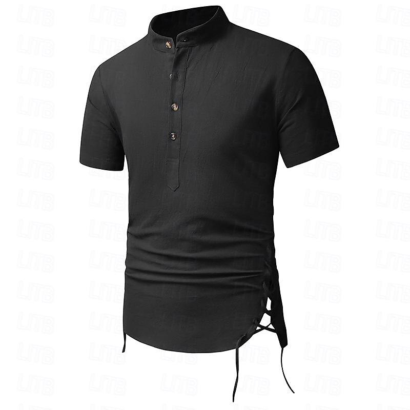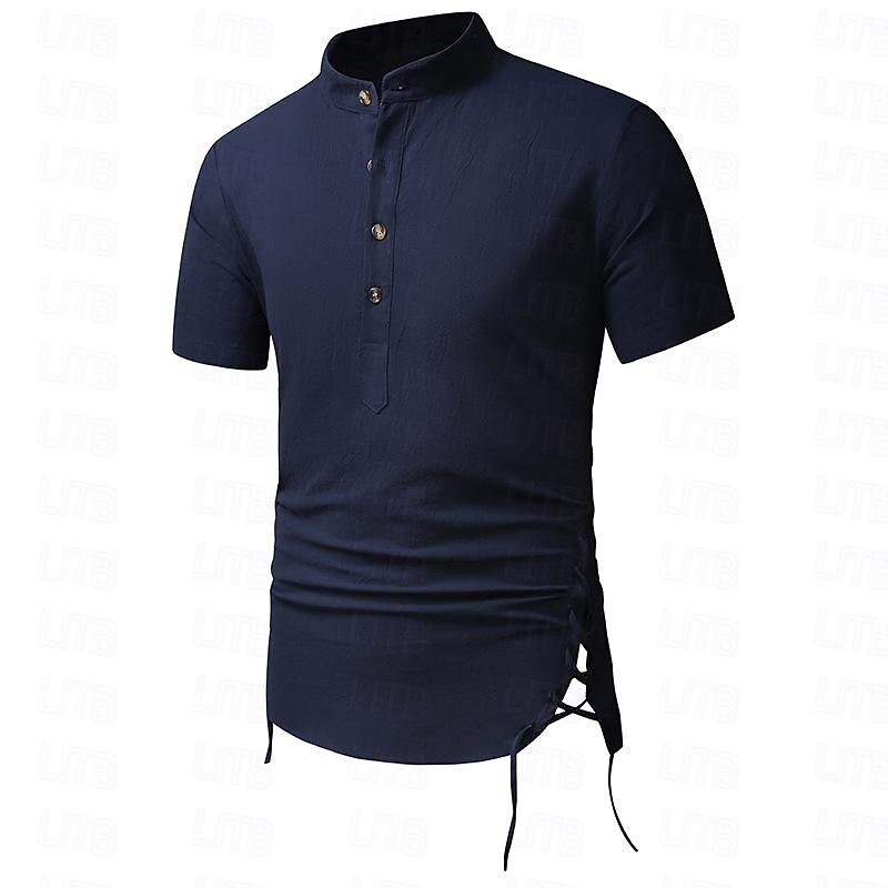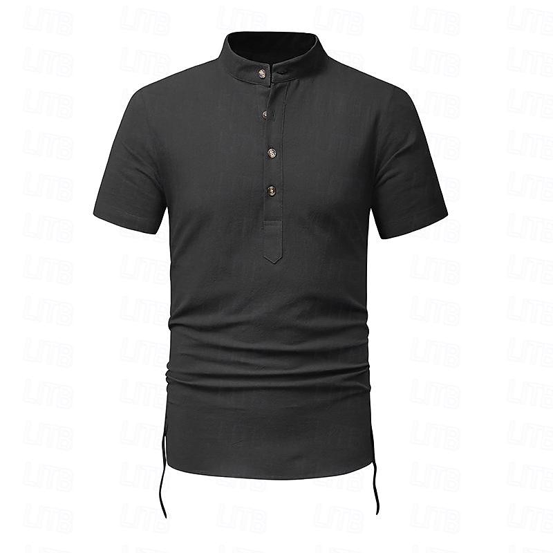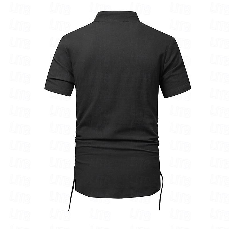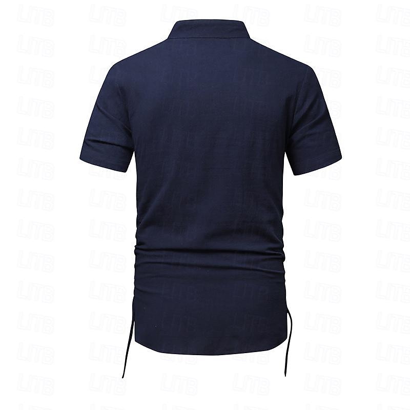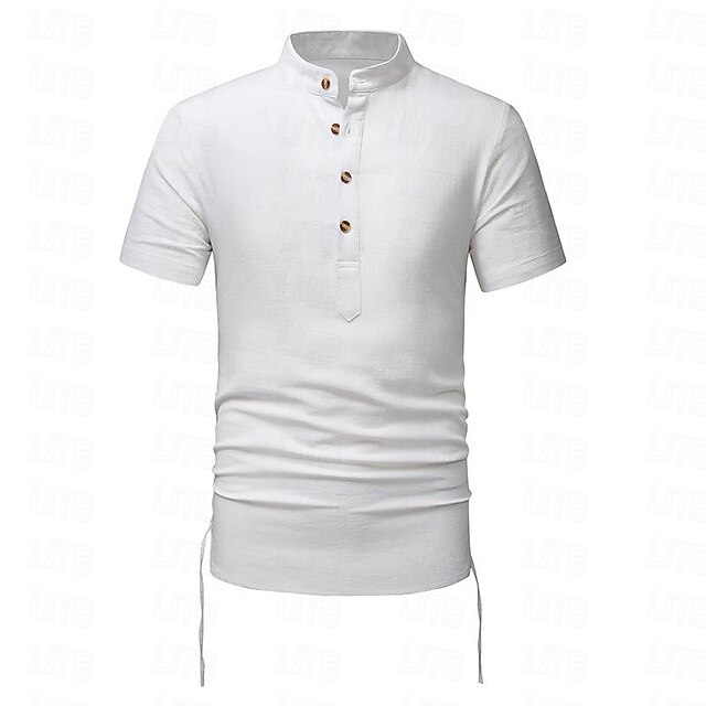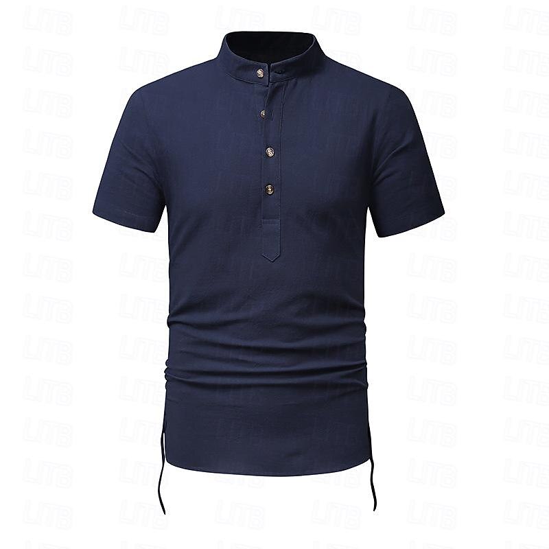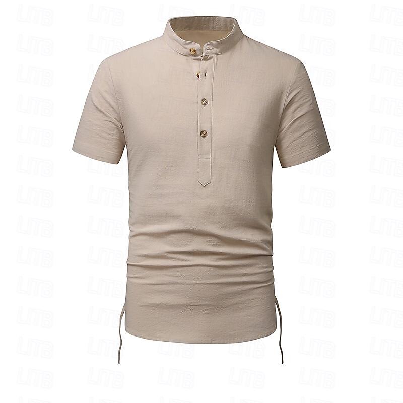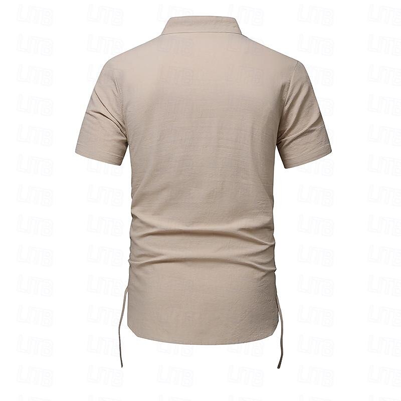 More information about Men's Shirt Linen Shirt Cotton Linen Shirt White Cotton Shirt Chinese Collar Shirt Mandarin Collar Shirt Plain Vacation Street Black White Navy Blue Khaki Short Sleeve Standing Collar Summer Clothing