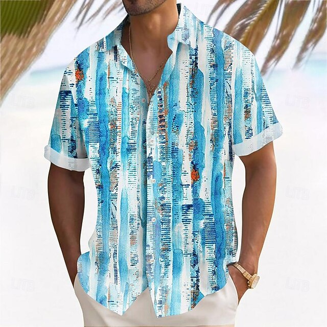 Why Choose Men's Geometric Striped Gradient Color Shirt Summer Shirt Button Up Shirt Short Sleeve Fashion Casual Outdoor Vacation Dailywear Summer Spring Turndown 3D Print Collared Shirts Blue?