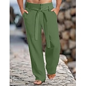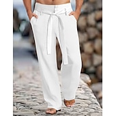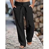 Men's Linen Pants Trousers Summer Pants With Belt Front Pocket Straight Leg Plain Comfort Breathable Full Length Casual Daily Holiday Fashion Basic Black White Inelastic
